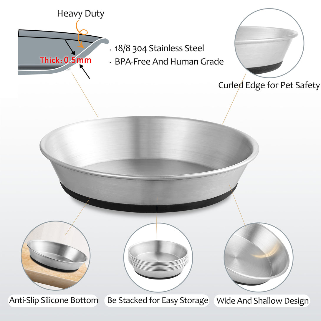 - 【Safe & Easy to Clean】These durable cat food bowls are made of food-grade SUS304 stainless steel, which is non-toxic, non-allergenic, and easy to clean. After washing with detergent or in the dishwasher, it won't retain any food odors. Additionally, the bowls are stackable, saving space.