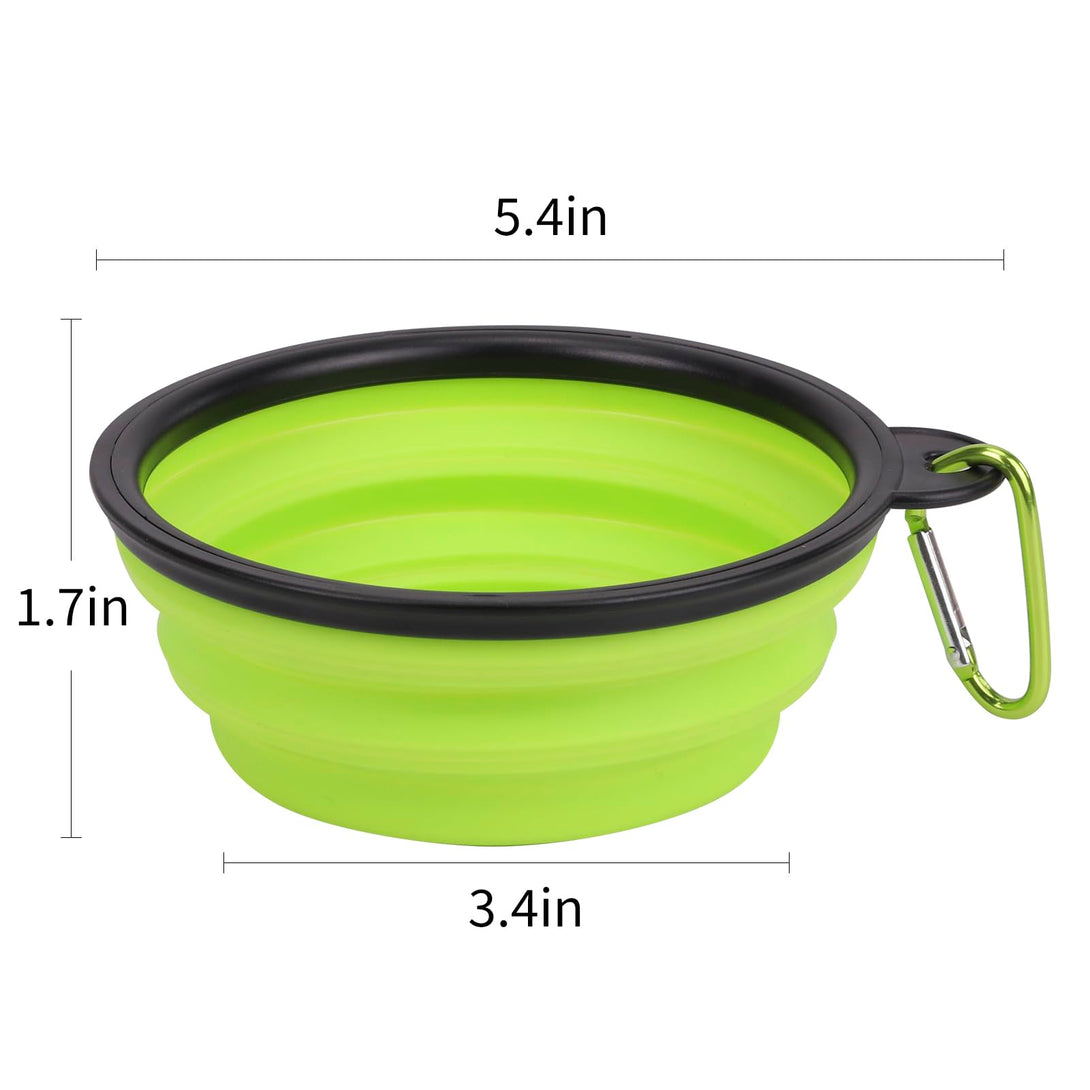 - Product Size: 5.1*3.4*1.7 cm, moderate size, suitable for most pets. By purchasing our product, you can get 5 portable pet bowls for Red Pink Blue Green and Yellow, each bowl has a carabiner on it, which can be clasped on a backpack, handbag or dog leash, convenient for your walking.