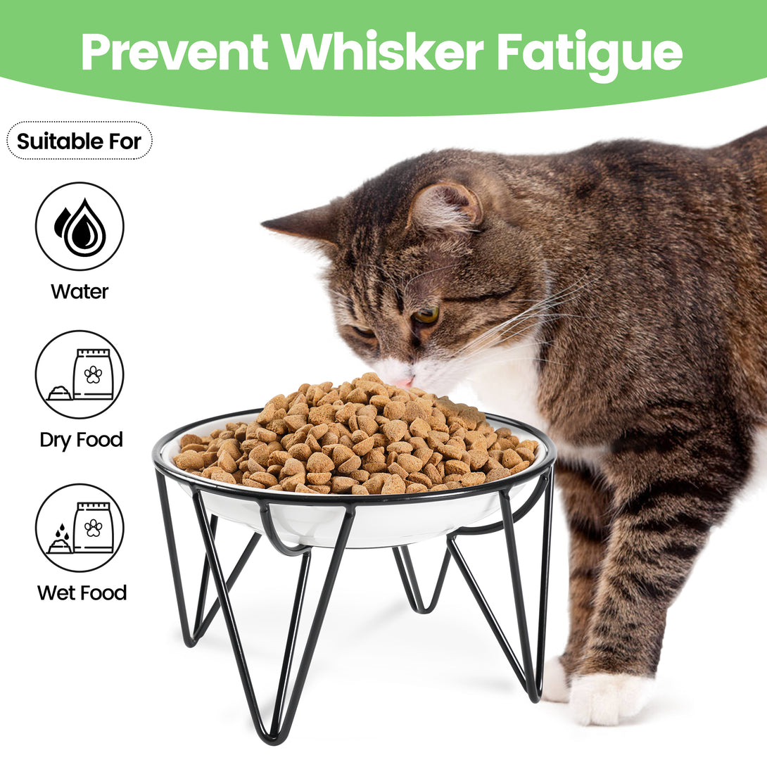 Whisker FriendlyRaised Cat Bowls feature a wide and shallow design that prevents whisker fatigue and reduces food mess. Your cat can enjoy a comfortable eating experience while keeping their face clean. |