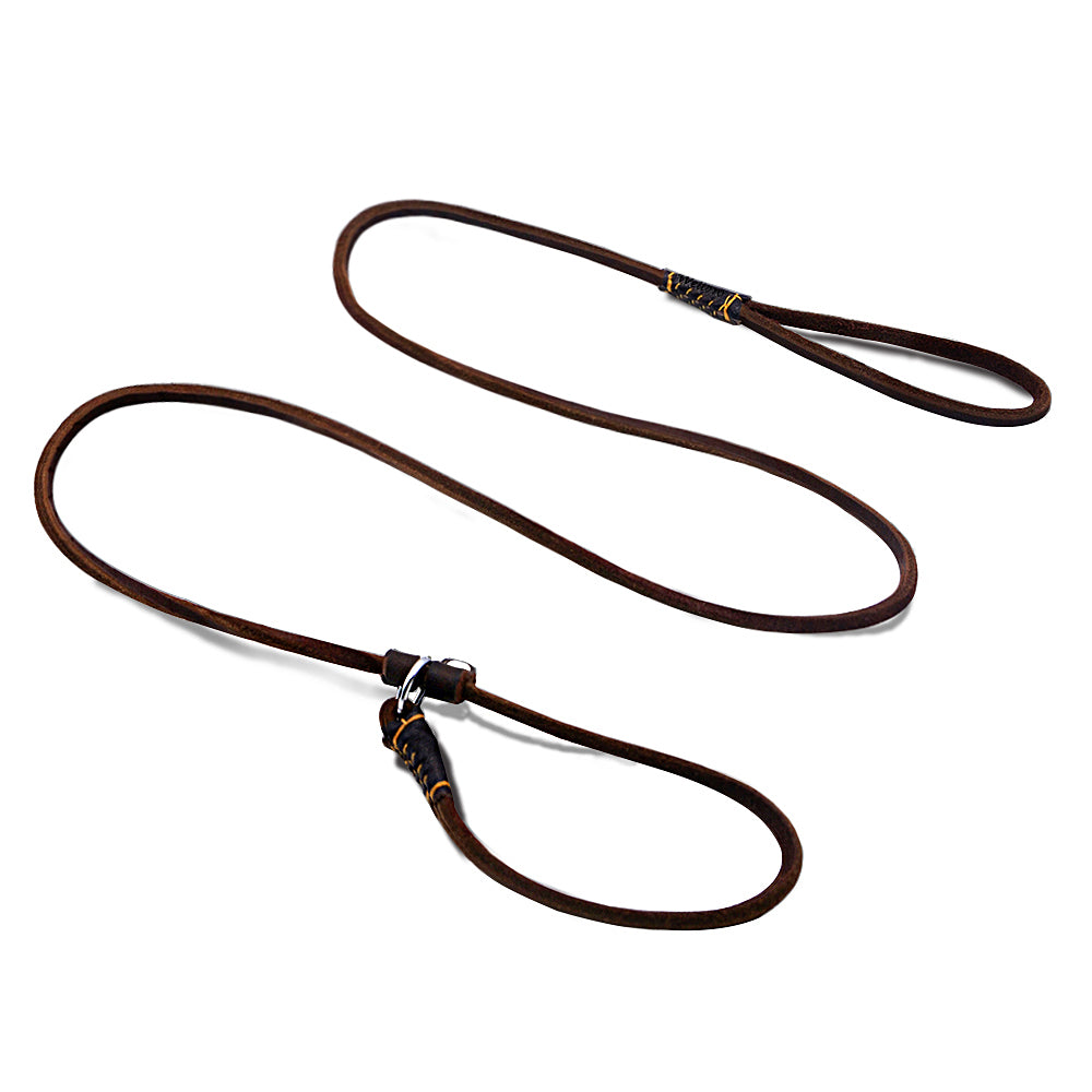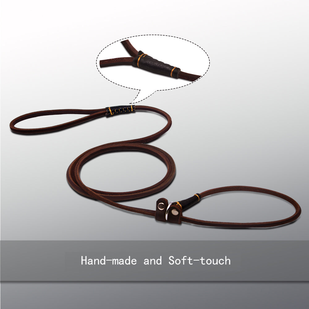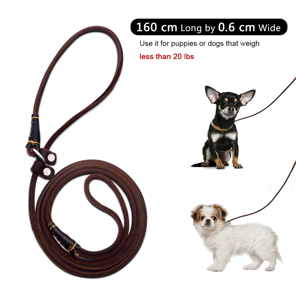 The dog training leash is in the size of L 5’ x W 0.6 cm x T 0.5 cm. This exquisite slip lead is available in only pure brown and perfectly recommended for puppies, cats, kitten and small dogs, like Yorkshire Terrier, Pomeranian, Teddy and so on.