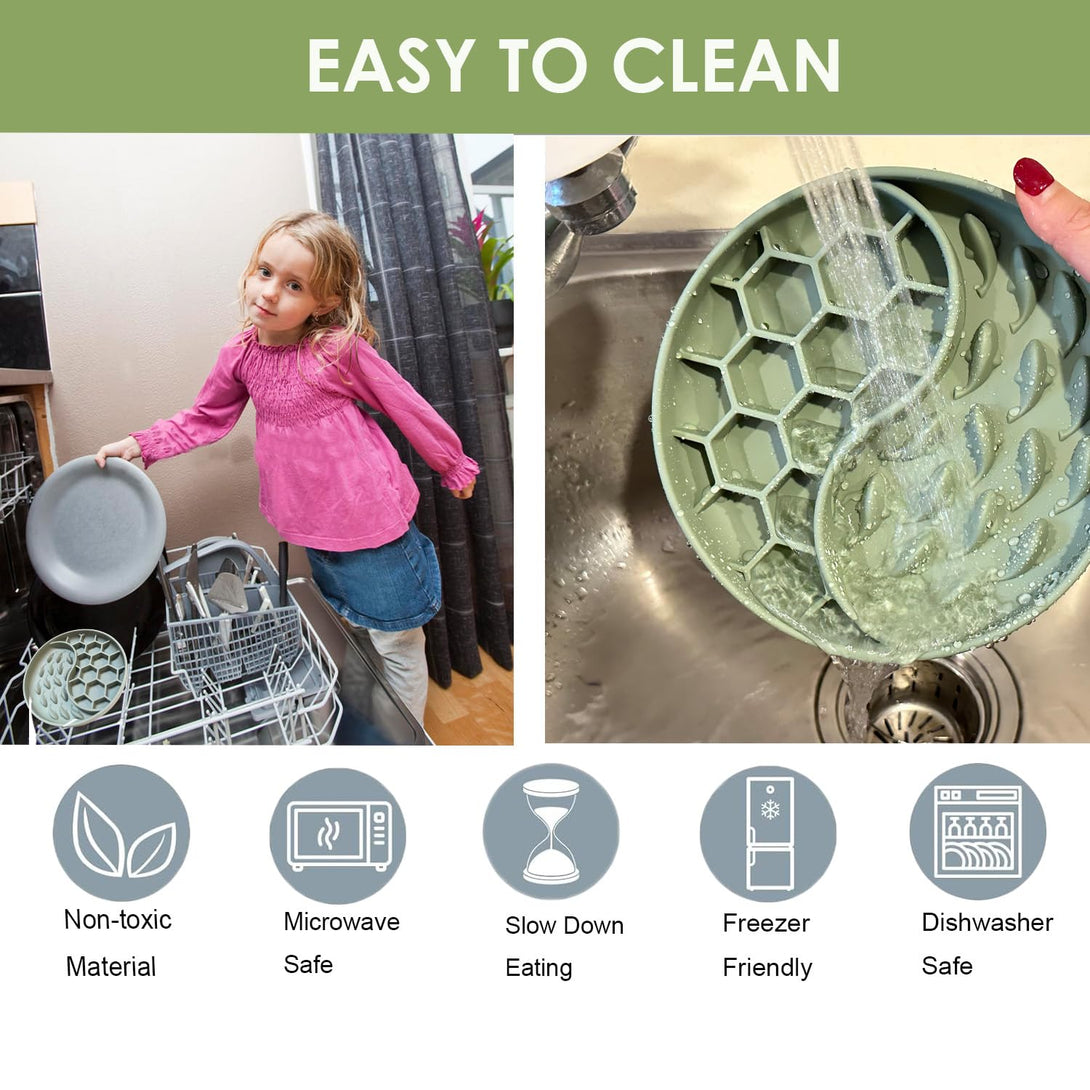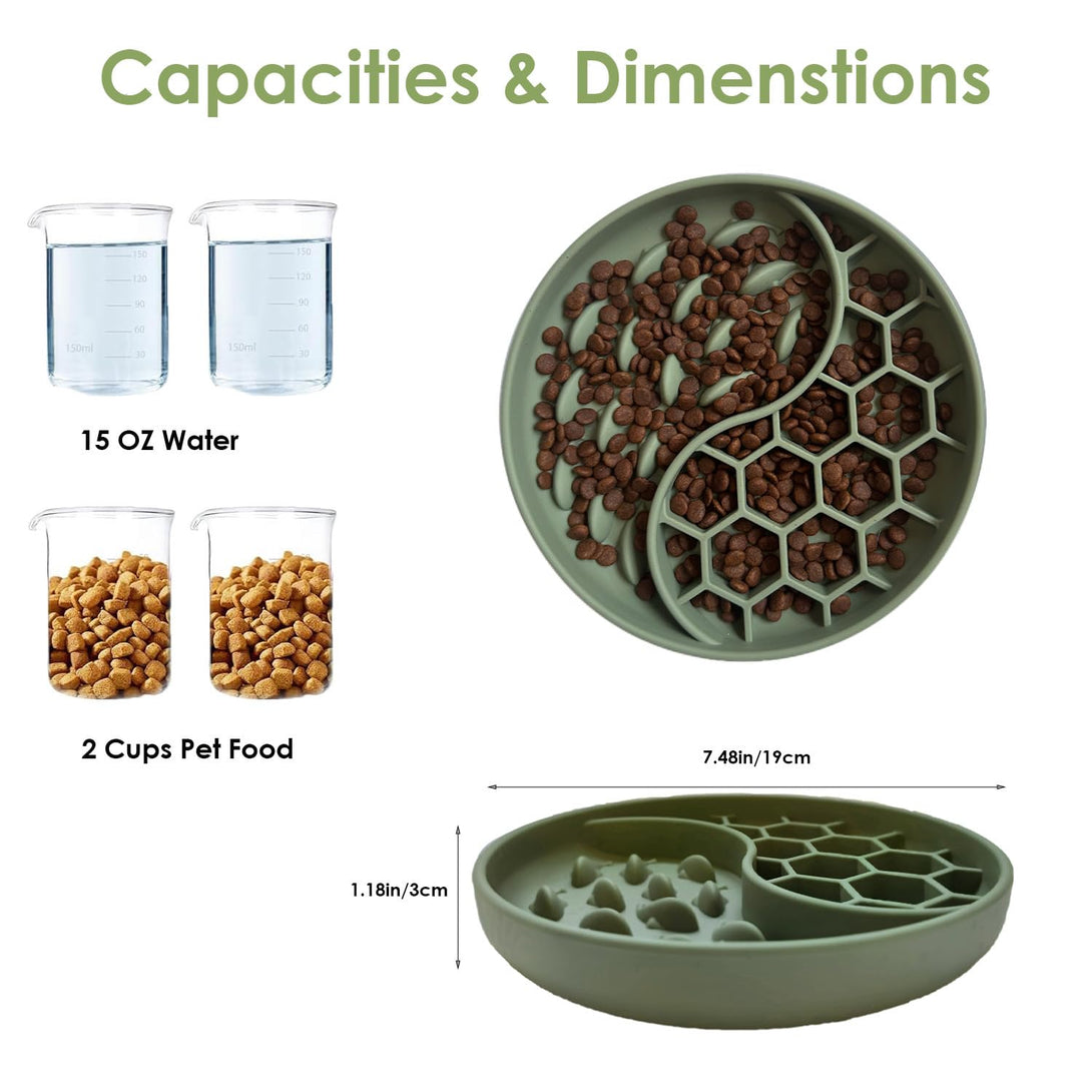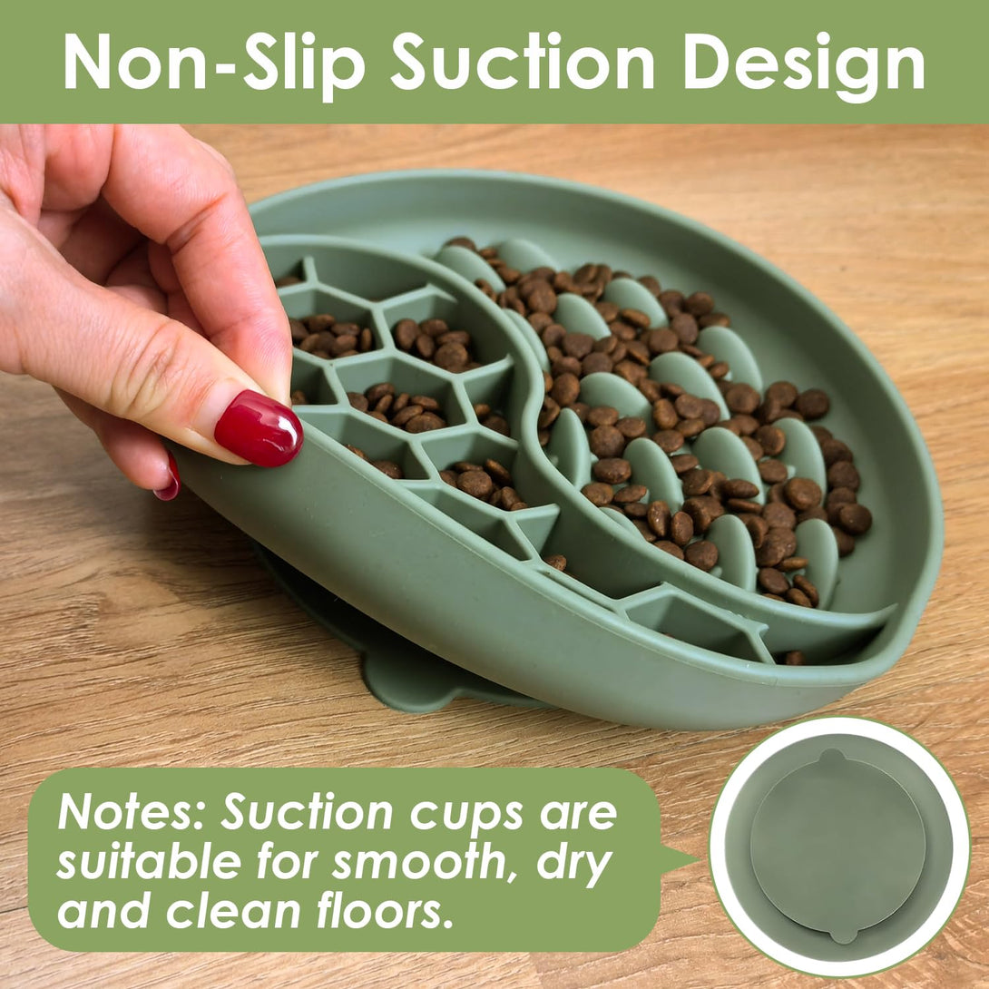 Silicone Slow Feeder Pet Bowl - Non-Slip, Dishwasher & Microwave Safe (Olive Green)