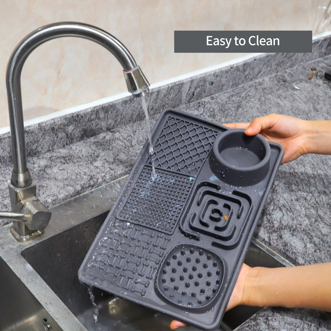 - Multipurpose Design: Not only is it a great slow-feeder mat, but it can also be used as a puzzle toy for treats or as a distraction tool during grooming or bath time. It can even be frozen to provide a longer-lasting, refreshing snack for those hot summer days.