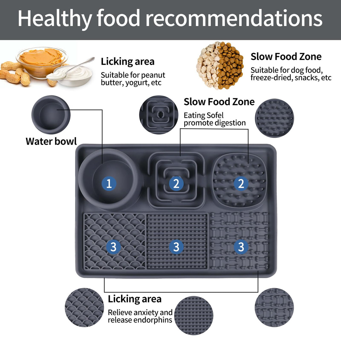 - Promotes Slow Feeding: Our Slow Feeder Lick Mat helps to slow down your pet's eating pace, preventing them from gulping down their food too quickly, reducing the risk of digestion problems and potential choking hazards.