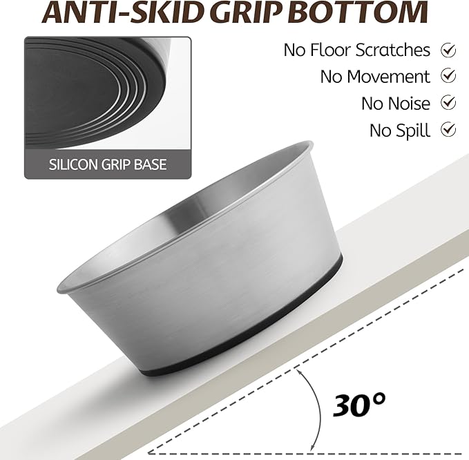 - 【Anti-Slip System】The non-slip design and anti-skid grip bottom work together to prevent spills and provide stability, no more mess. Make mealtime a tidy affair with Wellbro large dog bowls.