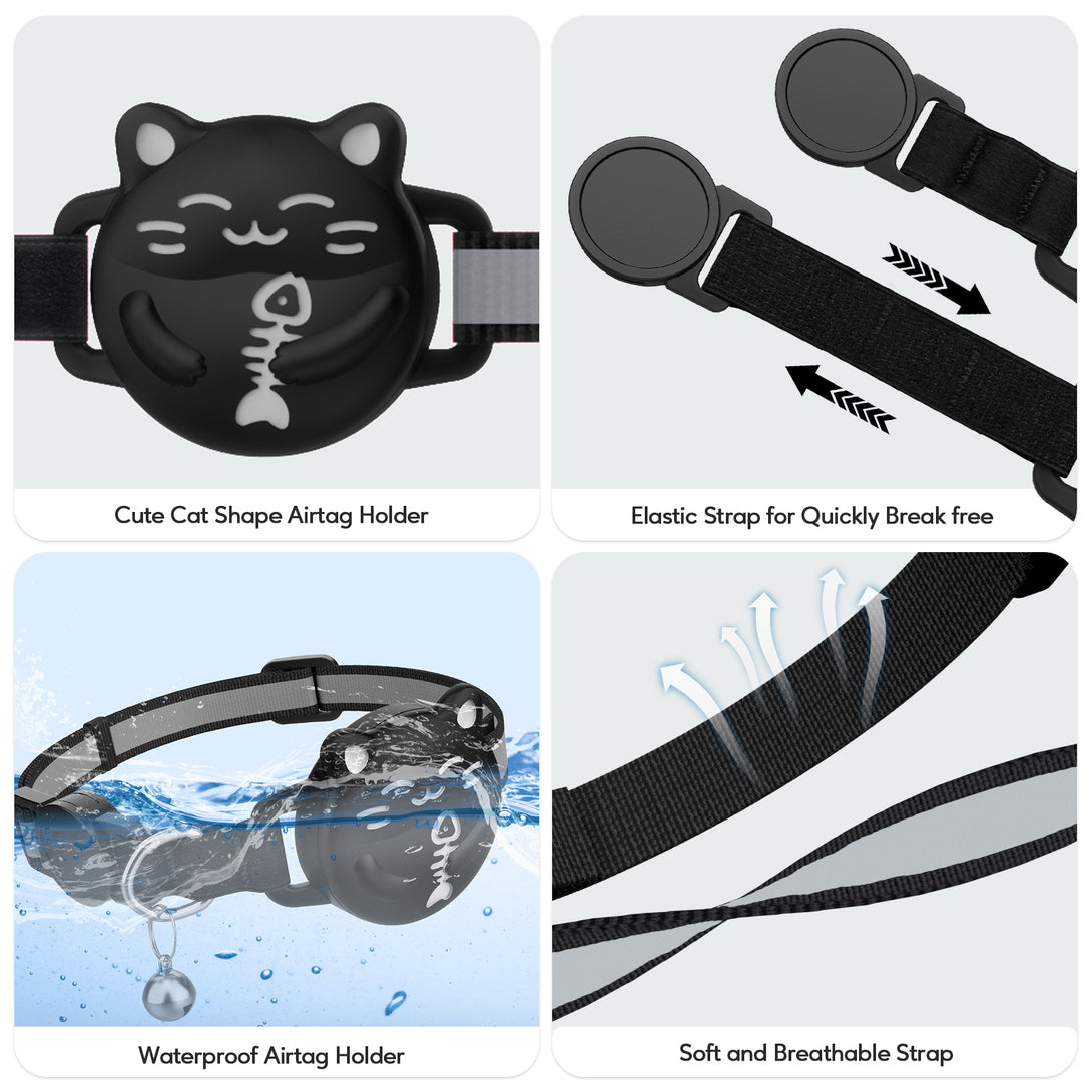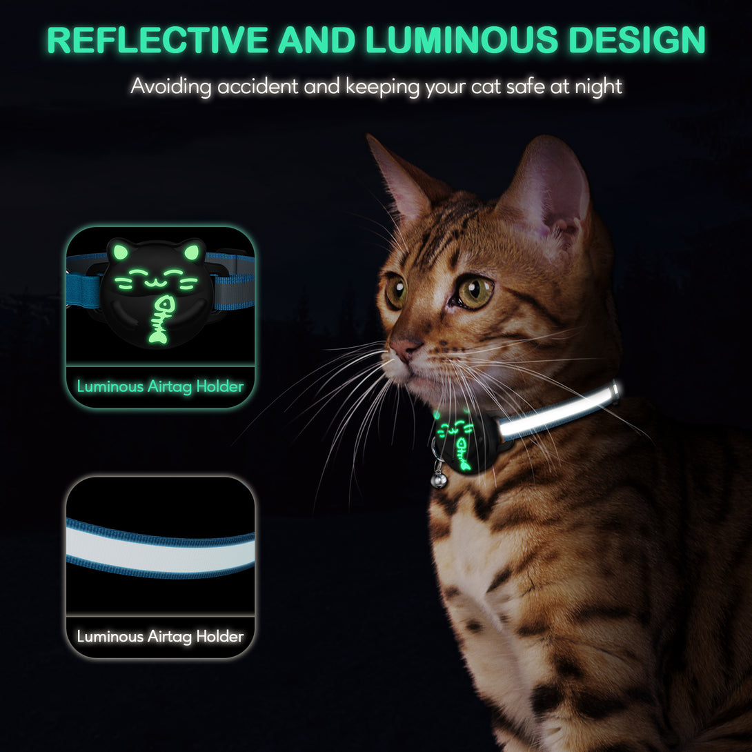 The reflective strap and Luminous Airtag Holder can keep your cat visible in the dark.